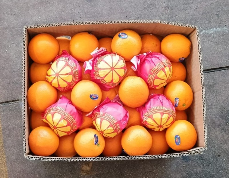Arance Varietà Valencia Calibro 72Origine Egitto Marchio Citrus