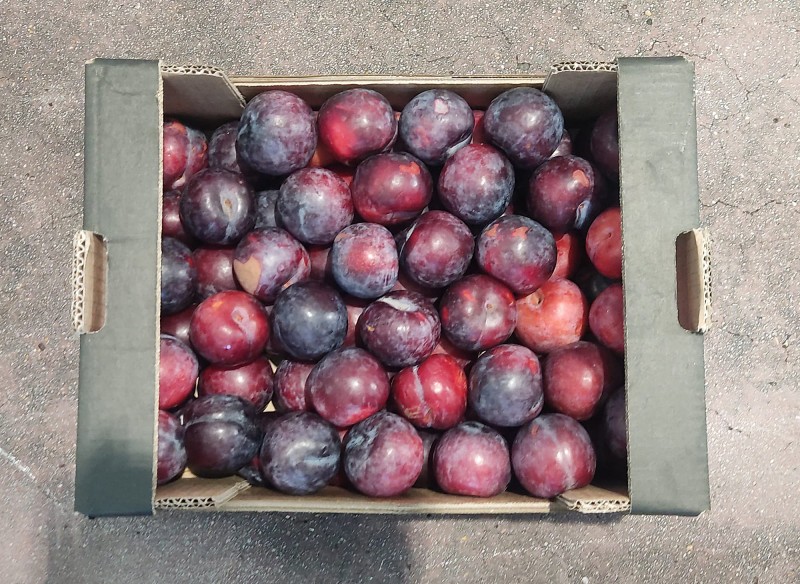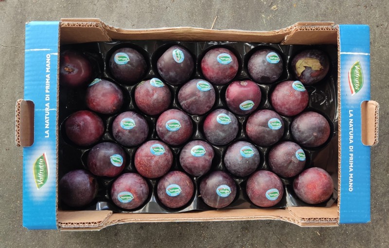 Prugne Nere Varietà Angeleno Calibro 40+ Origine Italia Marchio Cartone Nero