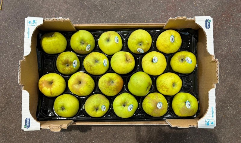 Mele Golden calibro 80/85 Lavorazione in Padella origine Italia marchio Melitaly